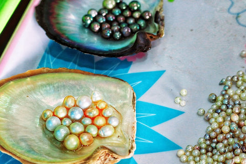 The basic body color of the pearl - usually white, black or gold - depends on the type of oyster. For example, black-lipped oysters from Tahiti typically produce black pearls, while Akoya oysters, native to coastal waters of China and Japan, typically produce white pearls.